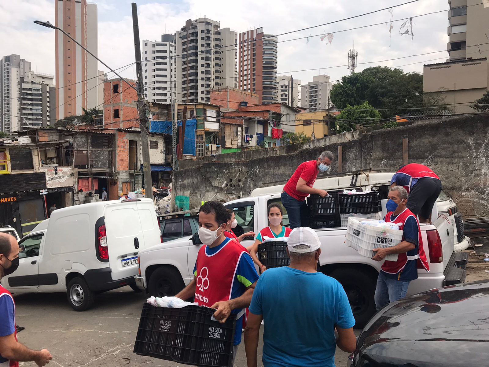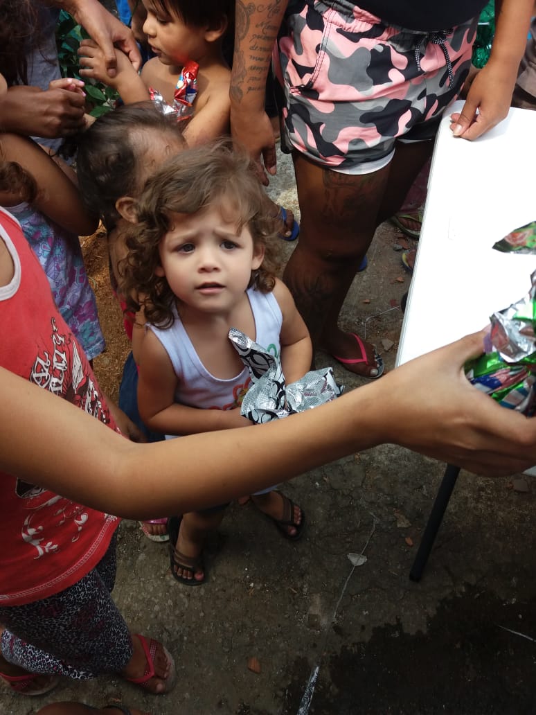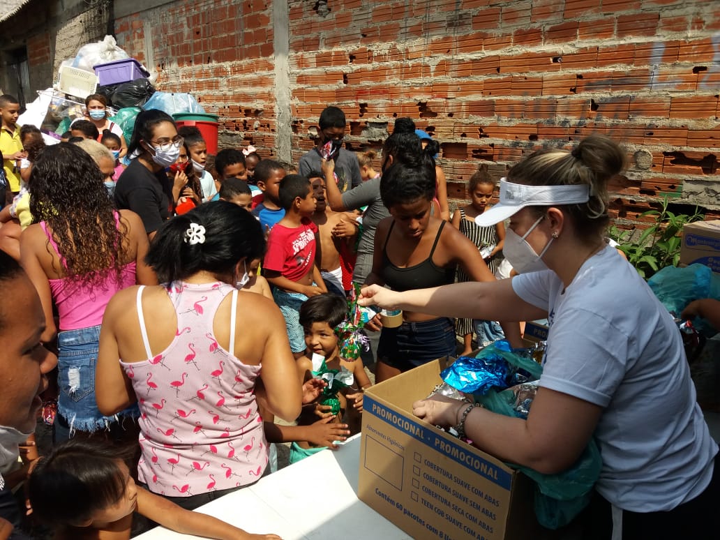 No segundo sábado de cada mês, vamos até a Favela do Piolho e levamos cestas básicas, itens de limpeza e higiene pessoal e roupas a cerca de 450 famílias em situação de vulnerabilidade previamente cadastradas, totalizando cerca de 1.000 pessoas beneficiadas. Como complemento, também doamos itens de acordo com a necessidade dos beneficiários, como máscaras de proteção, álcool gel e ração para pets. Para os meses em que o frio aperta, acrescentamos cobertores, toucas e meias.