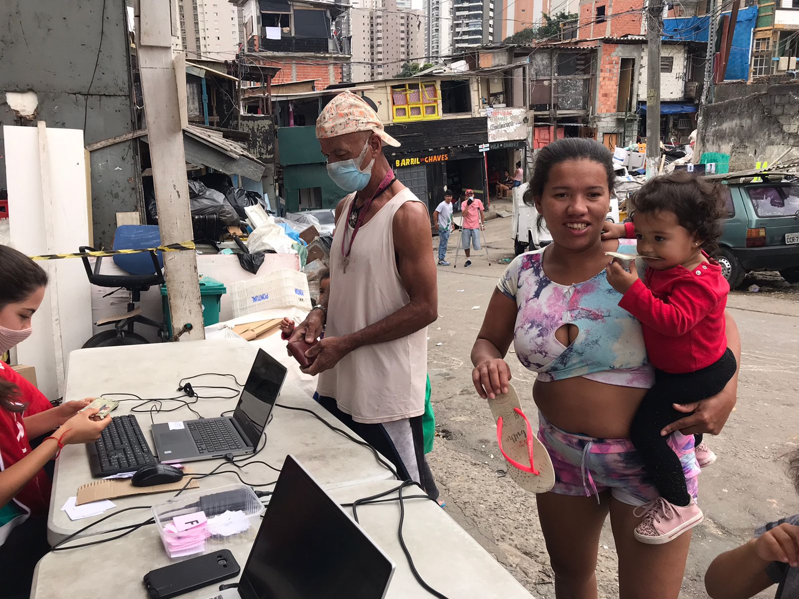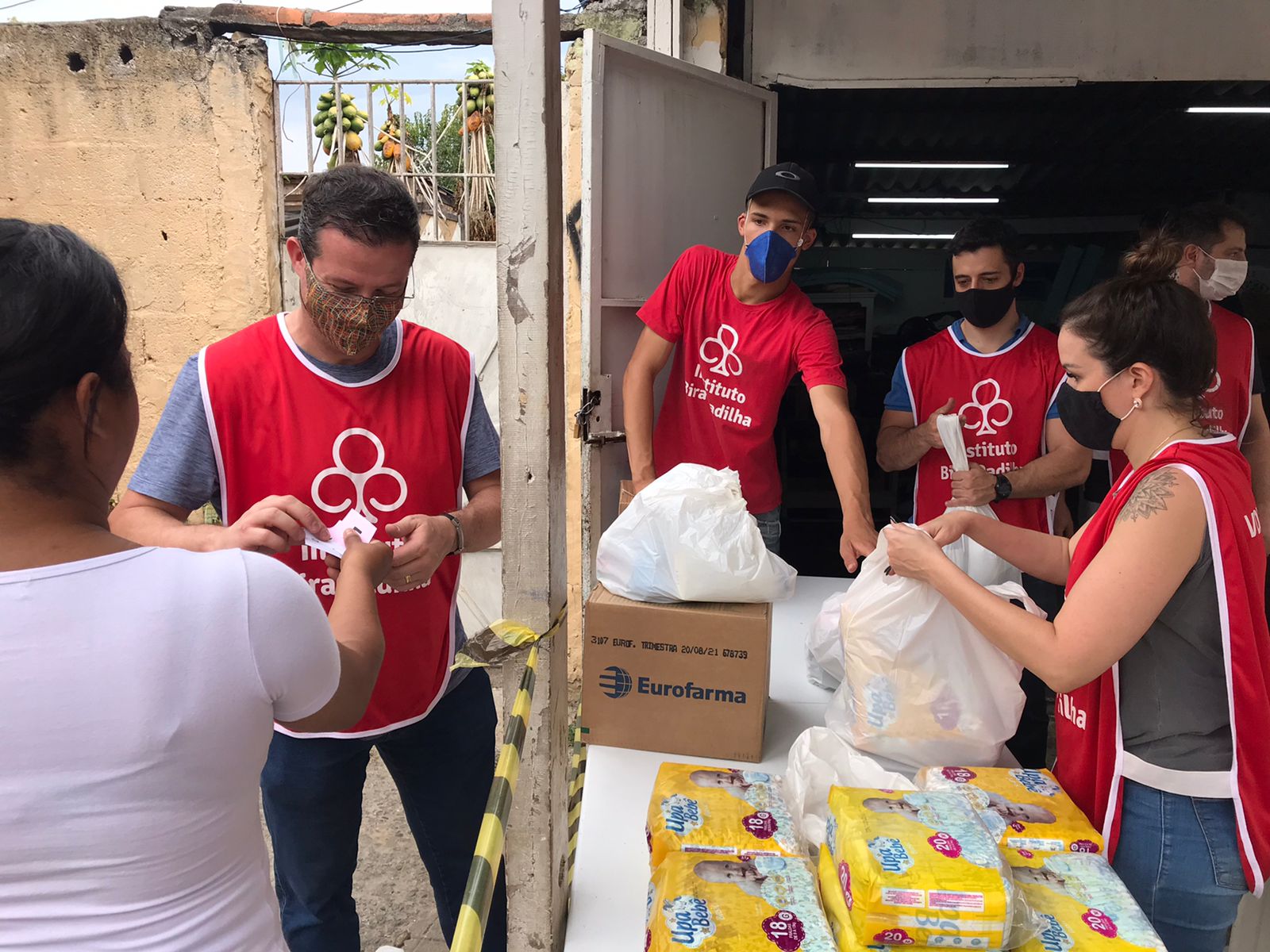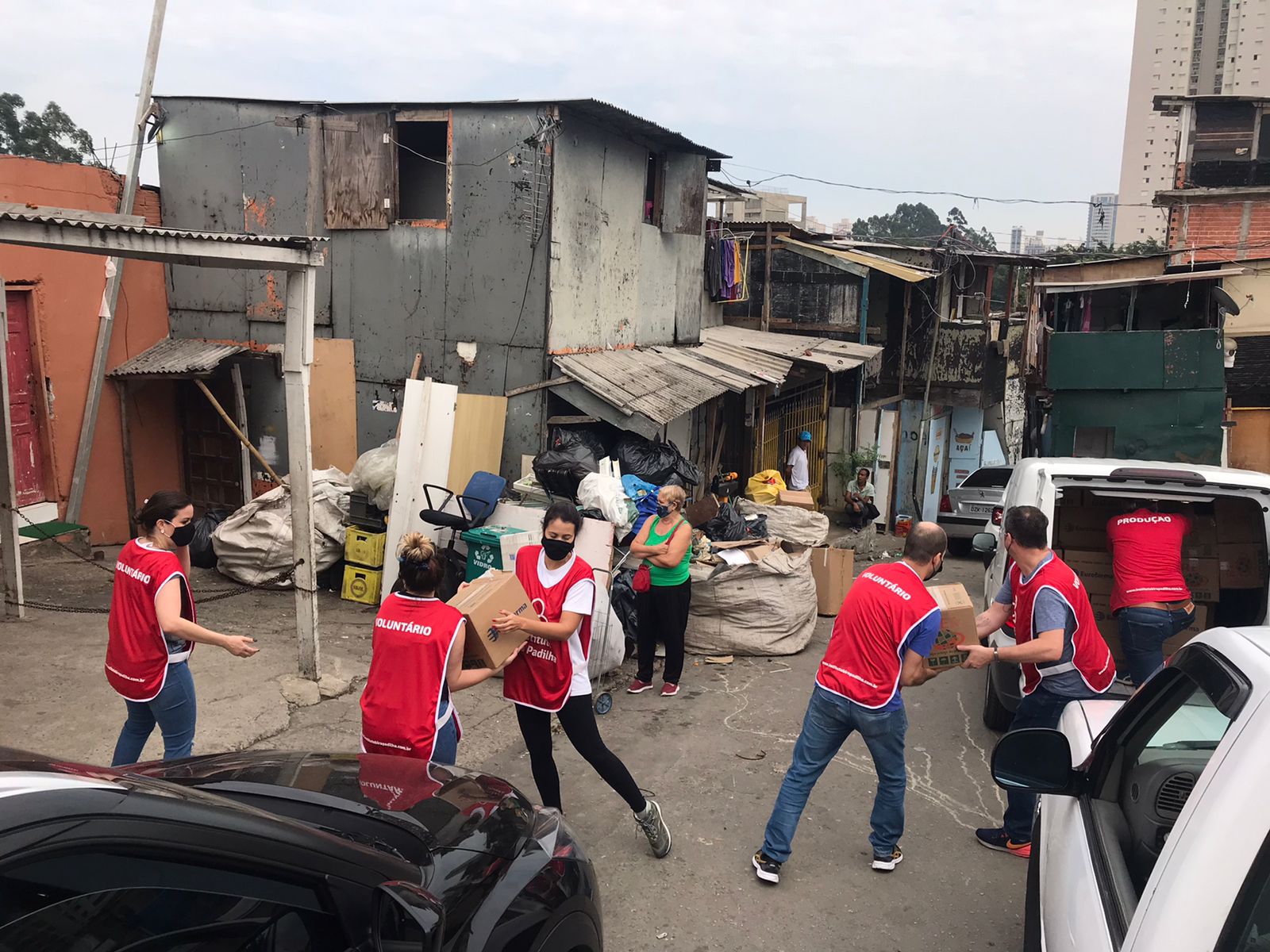 No segundo sábado de cada mês, vamos até a Favela do Piolho e levamos cestas básicas, itens de limpeza e higiene pessoal e roupas a cerca de 450 famílias em situação de vulnerabilidade previamente cadastradas, totalizando cerca de 1.000 pessoas beneficiadas. Como complemento, também doamos itens de acordo com a necessidade dos beneficiários, como máscaras de proteção, álcool gel e ração para pets. Para os meses em que o frio aperta, acrescentamos cobertores, toucas e meias.